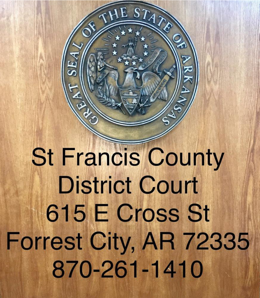 District Court of St. Francis County holds trials Monday and Wednesday and at 1:00 p.m. and Plea and Arraignment at 9 a.m. on Fridays. District Court is located behind the St. Francis County Courthouse in the District Court Building on East Cross St.